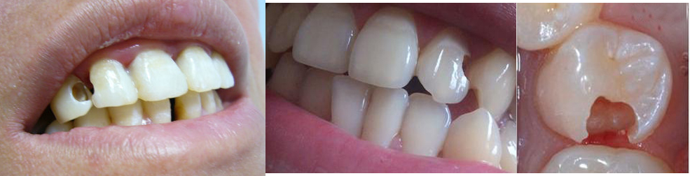 1.龋病引起的牙齿缺损:龋病(蛀牙)长期被食物中的糖分形成酸性物质对牙齿进行腐蚀,严重会形成龋洞,这些龋洞大多数不能自行停止,终造成牙齿腐烂。 >>>我的牙齿要怎么修补?咨询医生