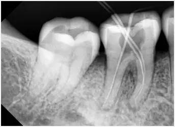 X线片显示根管充填完好,行暂时或永久牙体修复,带上牙冠,保护患牙。至此根管治疗才可算完成,同时根管治疗后还需复诊,一般周期可为3个月、半年、1年、2年或更长。